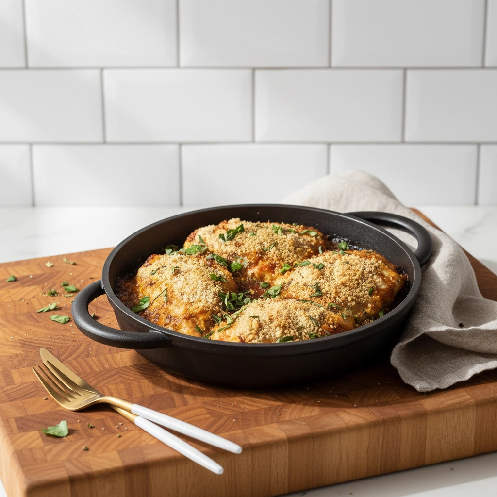Crispy Chicken Parmesan Golden, herb-crusted chicken baked in a rich marinara sauce with melted mozzarella. The Family Favourite – Crispy Chicken Parmesan A soul-warming