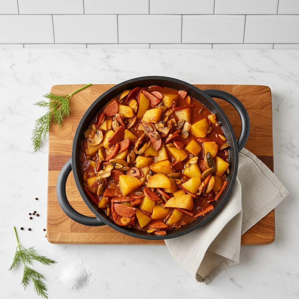 Smoked Chorizo & Potato Stew A vibrant, warming stew with smokey Spanish paprika, tender potatoes, and a zesty dill finish. The Comfort Favourite – Smoked