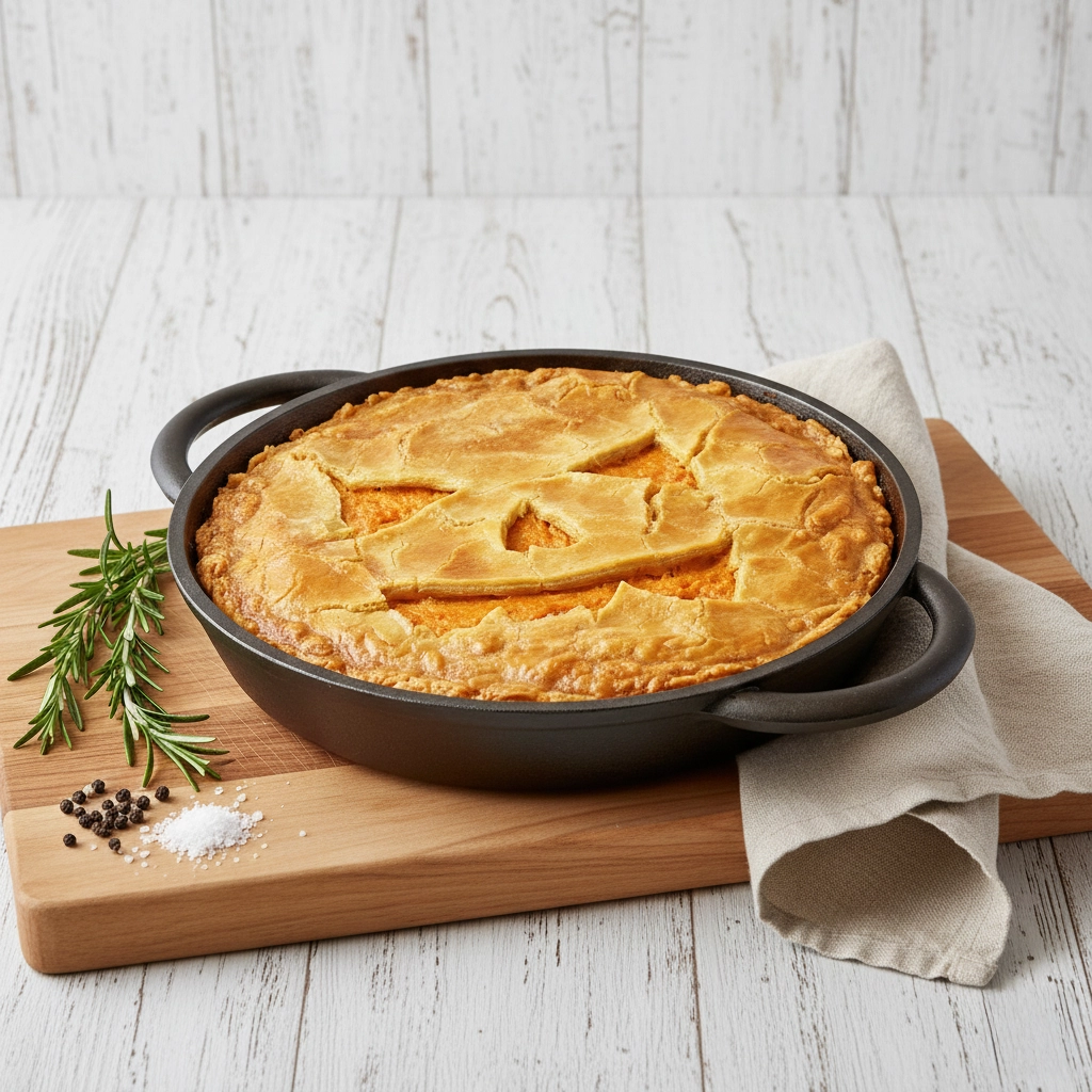 Spooky Pumpkin & Feta Pie A vibrant, turmeric-infused pastry crust filled with roasted squash, fragrant nutmeg, and tangy feta. The Seasonal Favourite – Spooky Pumpkin