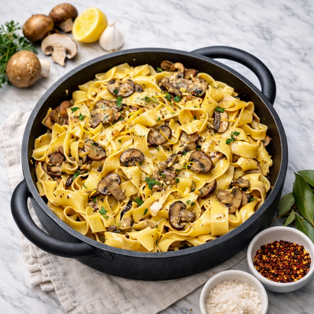Garlic Mushroom Pasta An easy and delicious pasta recipe that you can whip up in no time. The Comfort Classic – Garlic Mushroom Pasta A